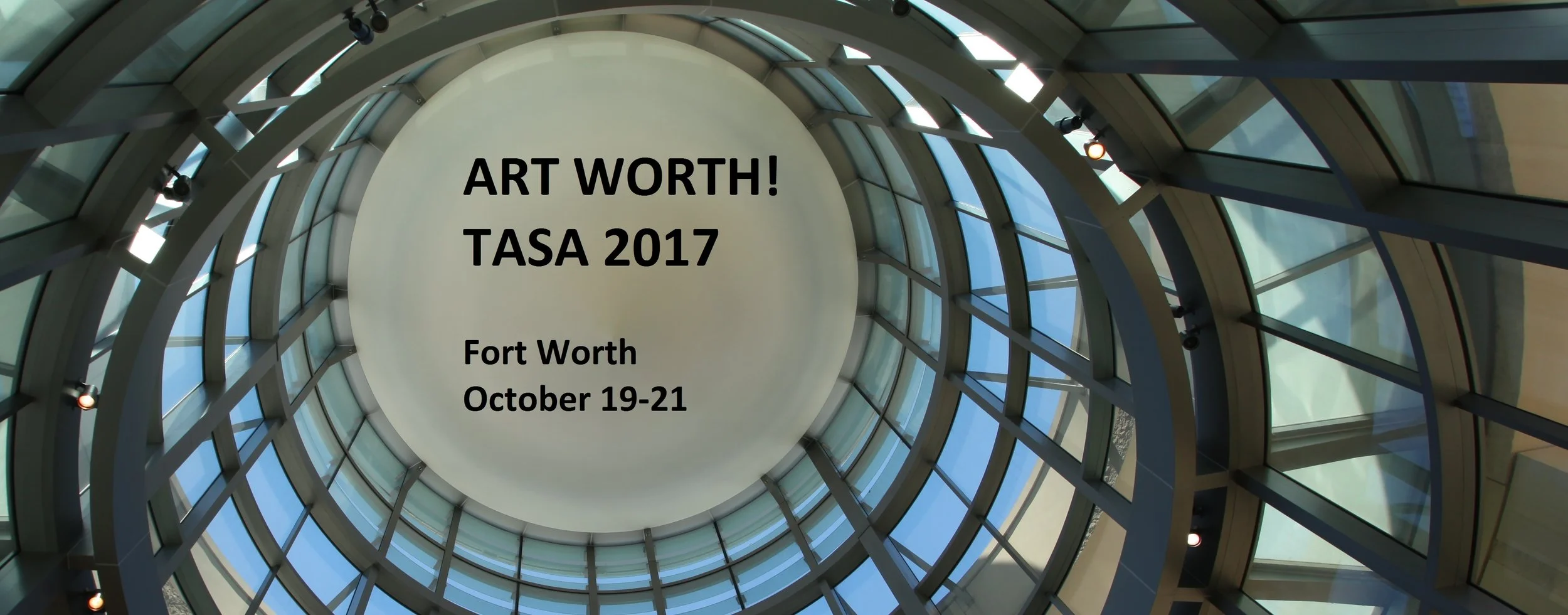 We are hoping you will be able to join us for the TASA conference in Fort Worth, TX, October 19-21, 2017, as well as enjoying the Arts Goggle weekend in Fort Worth. The weekend conference will be held in conjunction with the Arts Goggle weekend, and will include gallery and studio visits, a tour of the new Art facilities at UT Arlington and tours of the art district museums. The official conference hotel is the Holiday Inn Express & Suites Fort Worth, Downtown (866-551-9747). The Reservation Deadline for the conference rate is September 20 (TASA Conference Rate: $119.00 plus sales tax, single or double room, per night. Note that state and local taxes are 15%). And last but not least, the early registration deadline for the is September 20, after that date fees will increase.